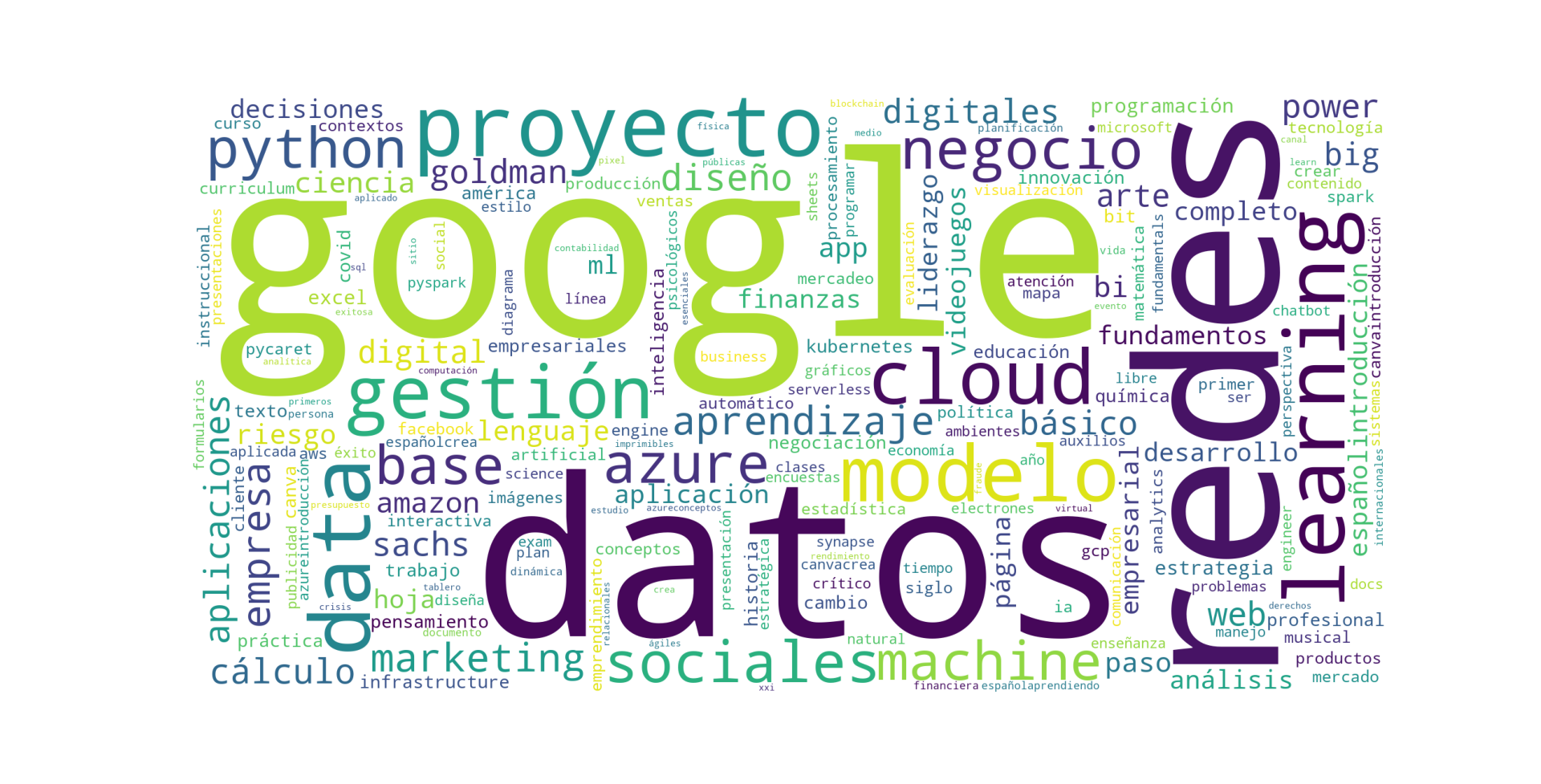 Goal: assess which knowledge areas are taught (and under or over-represented) in online courses in Spanish language on the Coursera platform.